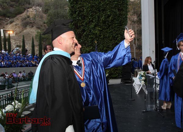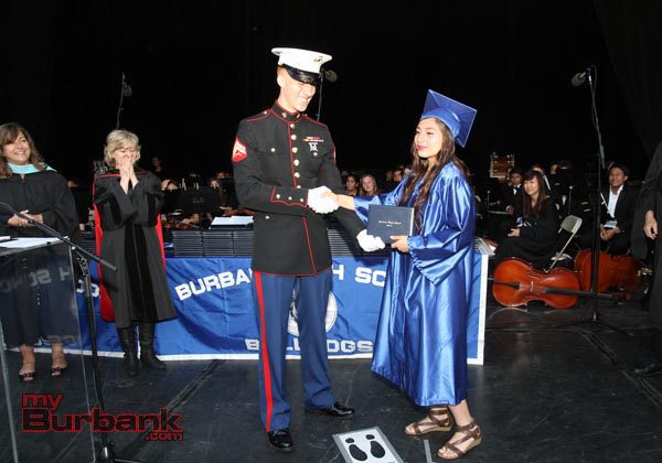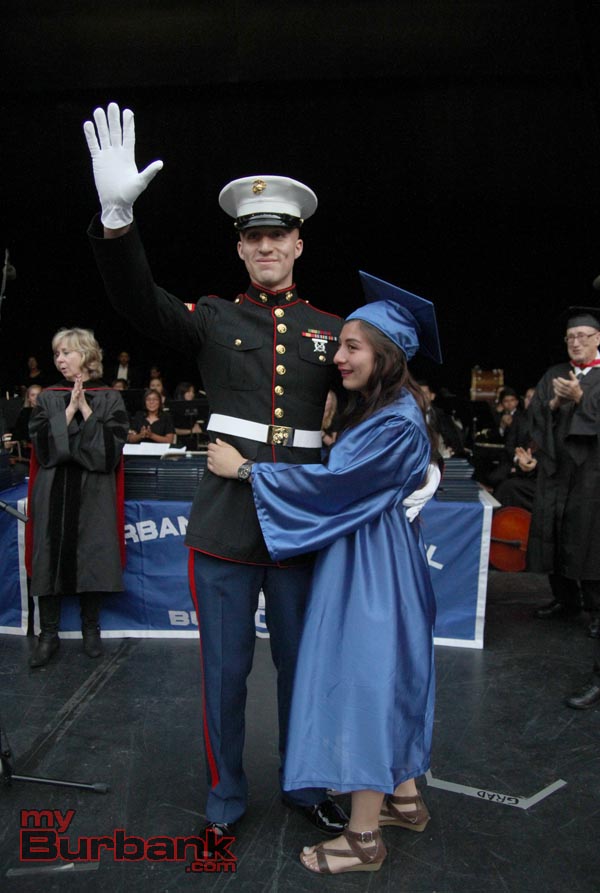 Burbank High’s graduation was anticipated by many, but one had a special surprise when her brother Jorge came home from serving with the Marines, and without prior knowledge, presented the diploma to his younger sister Emily Chacon for a great reunion. See some of the great Ross A. Benson pictures below of both the graduation exercise and the happy reunion.