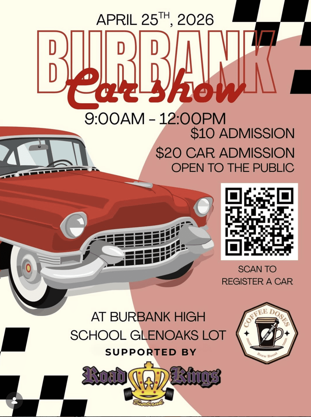 On Saturday, April 25, 2026, the Burbank High School Associated Student Body (ASB) will host a Car Show in the Glenoaks Lot at Burbank High School, located at 902 N. Third St., at the corner of Harvard Road and Glenoaks Boulevard. The event will run from 9:00 a.m. to 12:00 p.m. and is open to the public.