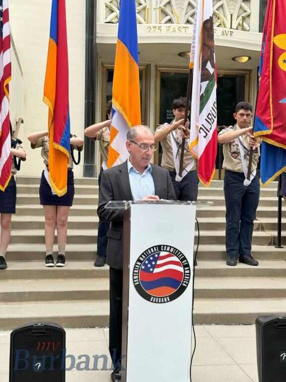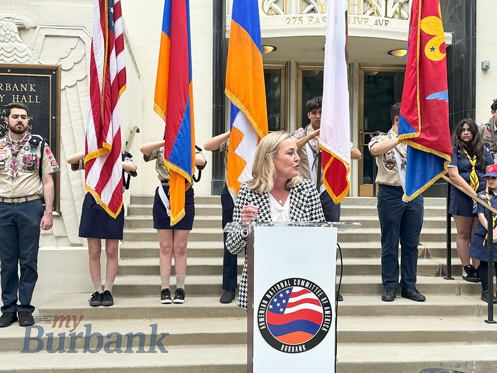 The ceremony had several guest speakers, including ANCA Burbank chair Sarkis Simonian, Assembly Member Laura Friedman, Los Angeles County Supervisor Kathryn Barger, Burbank Mayor Nick Schultz, Vice Mayor Nikki Perez, Councilmember Konstantine Anthony, School Board Vice President Armond Aghakhanian, councilmember from the city of Yerevan, Samvel Hakobyan.