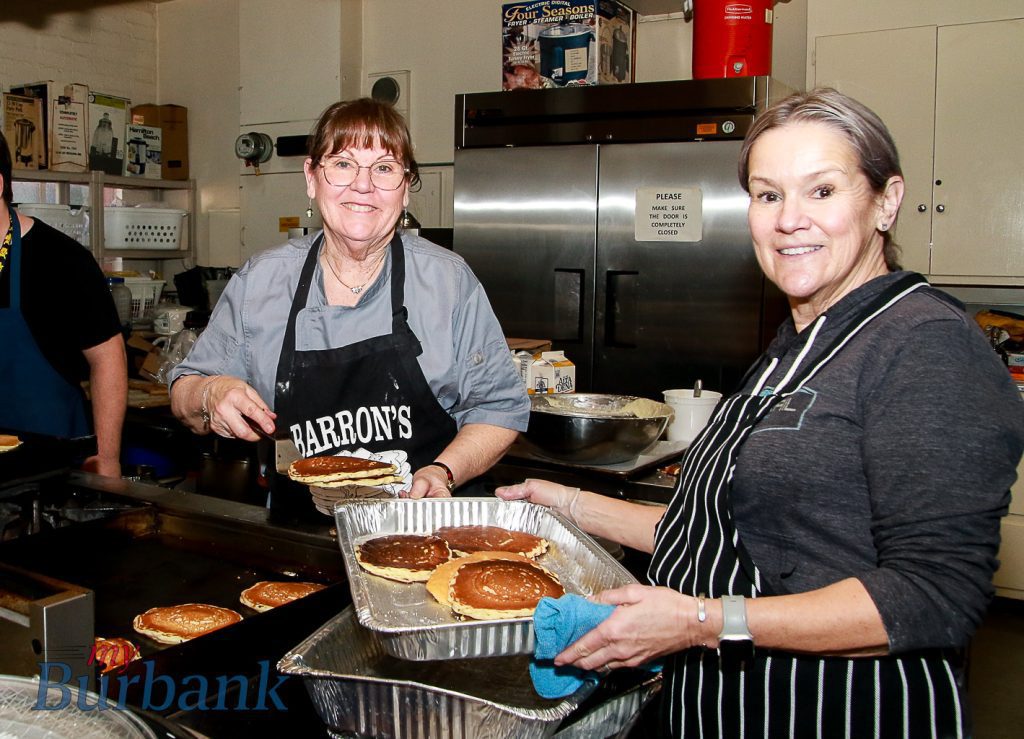 Volunteers like Connie Barron Trimble prepared her family’s signature buttermilk pancakes, with help from Denise Bergsrud, Julie Grene, and Martha Walter.