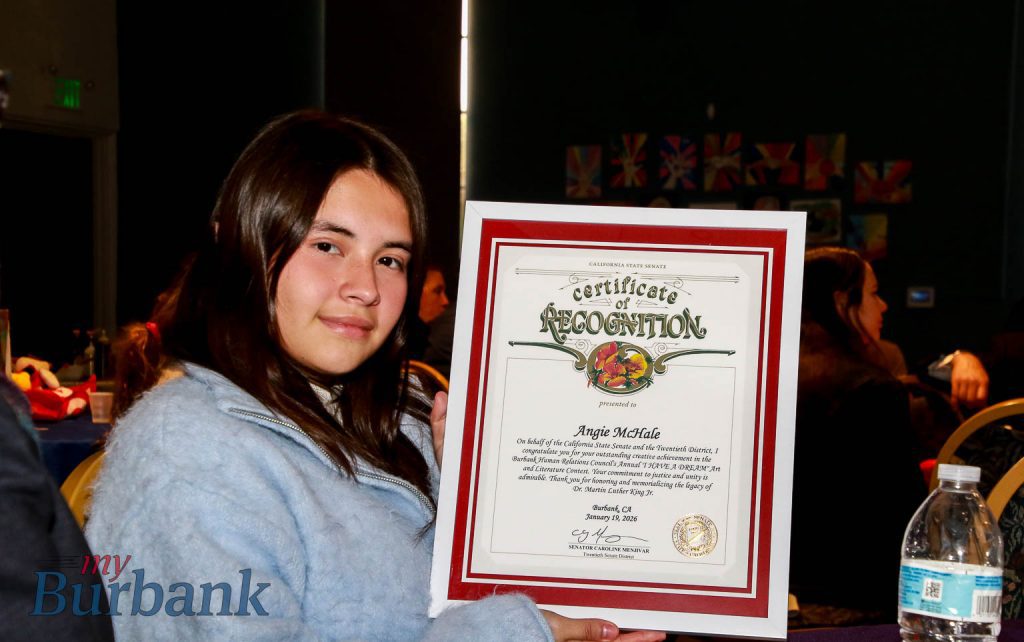 These are the words of Mane Tsaturyan, a 7th grader at St. Finbar School and the First Place winner in the Middle School category of Burbank Human Relations Council’s I HAVE A DREAM Poetry and Essay contest. Mane shared her poem in honor of Dr. King’s commitment to peaceful activism at BHRC’s annual MLK. Jr Day Pancake Breakfast on Monday, January 19.