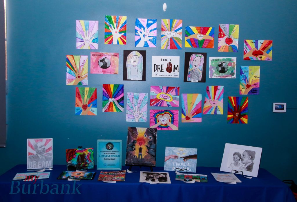This year was the first year that BHRC offered prizes to young visual artists, thanks to a Community Events and Program Grant from the City of Burbank. Elementary School honorees were Daniella Aghamalian, Melody Bowser, Emma Schulman, Mira Hovhannisyan, and Liam Barker from Joaquin Miller Elementary and Matiu Drake from Stevenson Elementary. Middle School Honorees were Parthenon Sakla, Maria Alekyan and Yeva Ghazarian all from John Muir Middle School. In the High School category, Burbank High Junior Elle Paris went home with the $100 second place scholarship, and Alina Olshansky, a freshman at Burbank High, received the $150 first place honor.