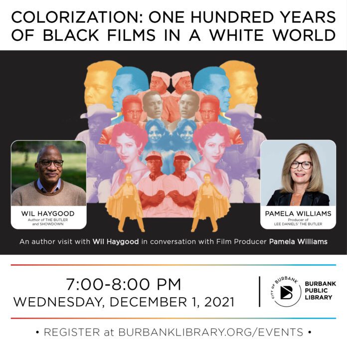 The Burbank Public Library presents an online author event for the recently published book Colorization: One Hundred Years of Black Films in a White World, featuring a discussion between writer Wil Haygood and movie producer Pamela Williams. The conversation on Black filmmakers and film history will be held on Wednesday evening, December 1.