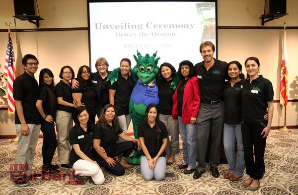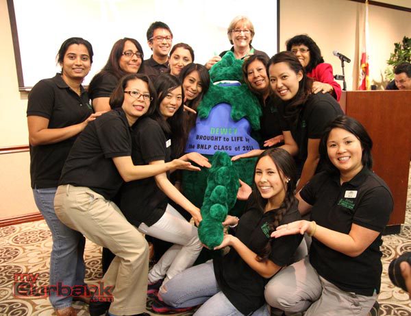 Burbank’s Newest Neighborhood Leadership Program class was gathered in the community room of Buena Vista Library for their unveiling of Dewey the Dragon.