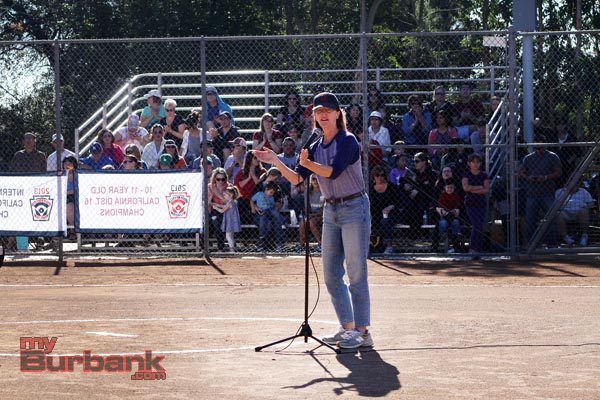 After Little League President Thomas Magoon kicked off the warm day, Burbank Mayor Emily Gabel-Luddy was the next speaker.