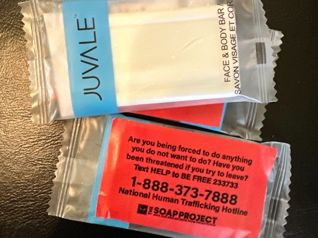 The effort was part of a collaboration with the SOAP Project, a national campaign that places discreet messages in high-risk locations such as hotels and motels. uses labeled hotel toiletries to provide critical information to trafficking victims.
