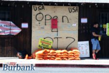 For the third time since April 1, Burbank police have arrested 20-year-old Lucas Lepejian of North Hollywood, the son of owner Baret Lepejian around 9:40 am on April 6 on a Burbank Municipal Code Violation for removing sandbags that were put in front of the doors of Tinhorn Flats by the City of Burbank earlier today.