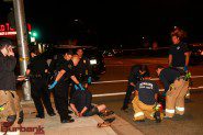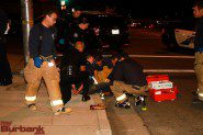A Burbank police officer approached a man who was bleeding in the intersection of Glenoaks and Providencia and the man, who was believed to be impaired, attacked the officer sending him to a local hospital with non-life threatening injuries.