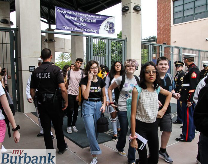 School board member Emily Weisberg referenced survey data collected by the Burbank police commission that noted the lack of safety felt by students of color in the presence of on-campus police officers and SROs. “We need students to understand the role of SROs,” said Weisberg, who went on to say, “the discussion of SROs in schools shouldn’t be politicized. However, the needs and safety of students of color should be taken into consideration in this discussion.”