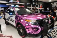 On Thursday, October 5, the Burbank Police Department unveiled a new pink police cruiser in honor of Breast Cancer Awareness Month. As a part of a movement called the Pink Car Project, the BPD collaborated with local automobile repair shop West Coast Customs to create the chrome-wrapped Ford Explorer.