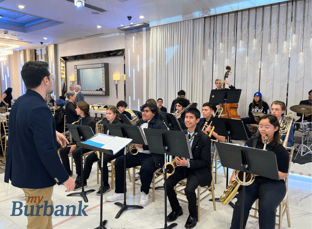 Guests to the event were welcomed with a red carpet arrival and seated according to their school. The Burbank High School Jazz Band performed on the dance floor as PTA presidents, award recipients, school principals, and school board dignitaries and staff mingled over wine and appetizers at their tables. The John Burroughs High School vocal group, Neo Chromatics, also came out to perform a few a cappella songs.