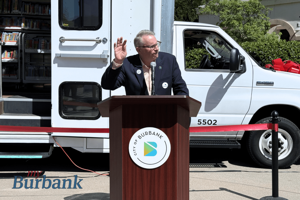 Leading the ceremony was Burbank Library Services Director Eric Lashley, who shared how the new bookmobile will expand outreach efforts across the city. “Starting this May it will begin reaching families and residents who may not be able to visit the library in person,” said Lashley. “We can’t wait for everyone to explore it.”