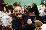 Giving joy. Last Tuesday, December 4, the two clubs put on their annual holiday dinner for those cared for by BCR, together with their families. The Emmanuel Church’s gymnasium echoed with happy chatter as the over 100 people enjoyed Handi Mart’s lasagna and eagerly awaited the arrival of Santa Claus.