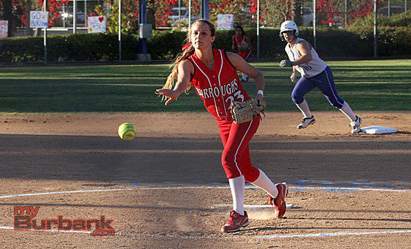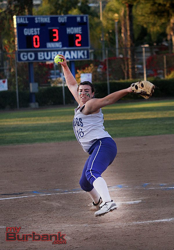 After Thursday night’s 3-0 victory against cross-town rival Burroughs, the Burbank softball team took a major step in its quest to win a league championship for the first time since 1987. On a beautiful evening at McCambridge Park, sophomore Caitlyn Brooks dazzled the overflow crowd while bedazzling the Indians with a complete game shutout.