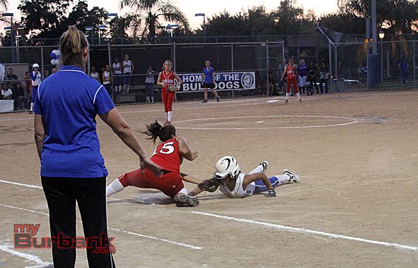 Burroughs (13-6, 5-2) had several opportunities early on to make a dent into Burbank and Brooks’ psyche. Michelle Santiago led off the game with a triple only to be stranded there after a strikeout and double play. Brooks caught a line drive off the bat of Kaitlin Okimoto and doubled Santiago off third base.