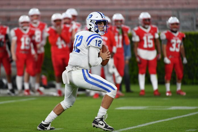 Aram Araradian sits back in the pocket looking for a receiver. Photo courtesy Doug Brown