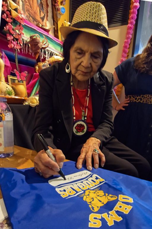 Dolores Huerta spoke to those gathered, sharing her wisdom and stories from her decades of activism. The crowd swelled with admiration and emotion, culminating in a thunderous group chant of her iconic rallying cry: “¡Sí se puede!”