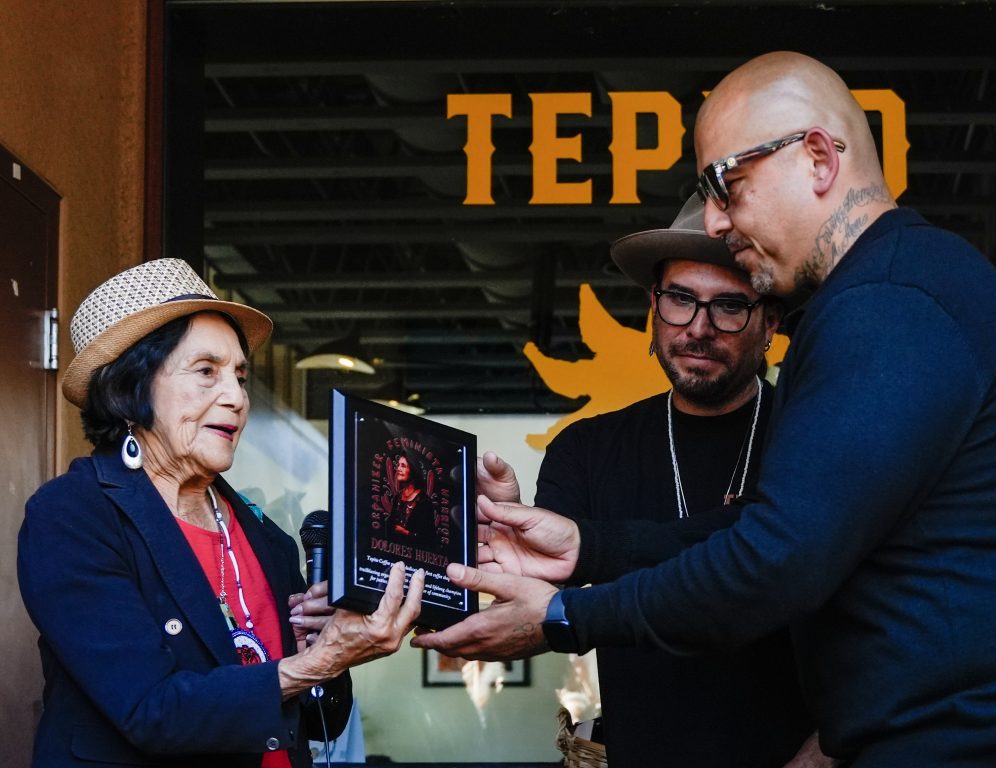 Hosted by Tepito Coffee in Downtown Pasadena and co-hosted by Homeboy Industries, the heartfelt gathering brought together over 200 people that lined up around the block to celebrate Huerta’s lifelong commitment to labor rights, civil justice, and social empowerment. Dolores Huerta is one of the most influential labor activists in American history. As the co-founder of the United Farm Workers alongside César Chávez, Huerta has spent her life fighting for the rights of farmworkers, women, and marginalized communities. Her tireless advocacy earned her the Presidential Medal of Freedom in 2012.