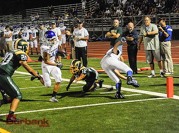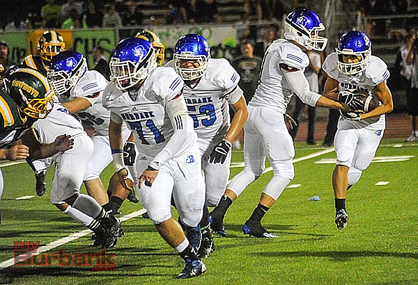 Burbank (2-1) tied it a seven when senior quarterback Ryan Meredith snuck in from one yard out with 3:12 left in the first quarter.