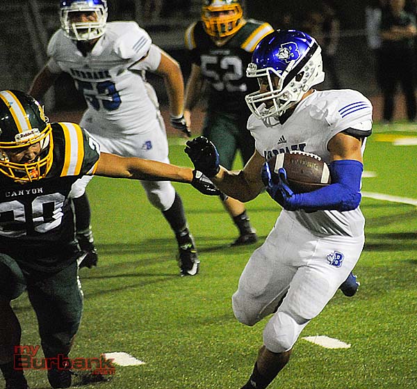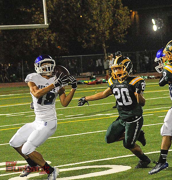 Burbank maintained a 14-7 lead until Canyon’s Myron McAfee burst through the Bulldogs defense en route to a 77 yard touchdown run that sent the teams into the locker room deadlocked at 14.