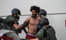 Two hours into the standoff, SWAT officers deployed chemical irritants into the car causing the suspect to throw pieces of his clothing out the passenger window. Moments later he raised his hand and exited the car wearing only red underwear. Still failing to comply with orders, he was then struck with a non – lethal device and he fell to the ground and was taken into custody.