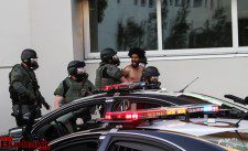 Burbank’s SWAT Team deployed a diversionary device as the man was now located in the passenger seat. After about 30 minutes passed, officers used different methods to get the suspect from the car. Burbank SWAT was assisted by a members of the Glendale Police Department’s SWAT team with their Bearcat Armored Vehicle.