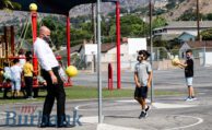 Dr. Matt Hill, BUSD Superintendent, gets a little game of tetherball during recess at Thomas Jefferson Elementary. ( Photo by © 2021 Ross A Benson)