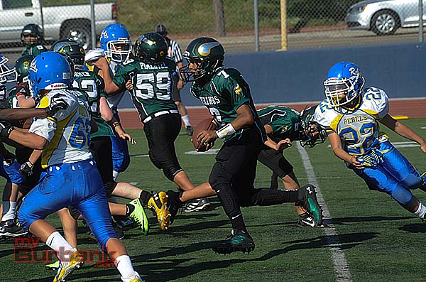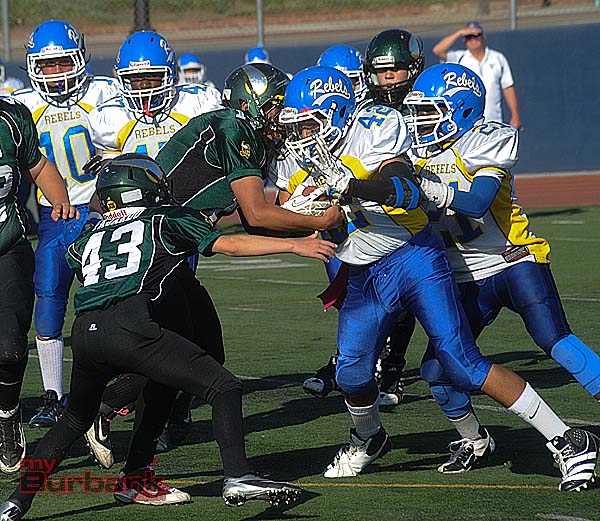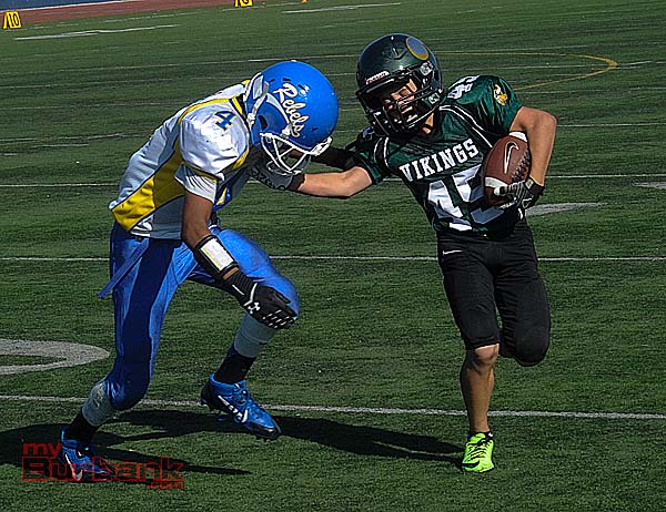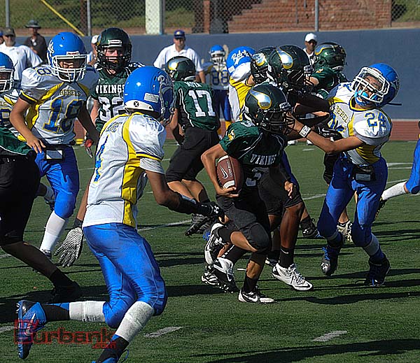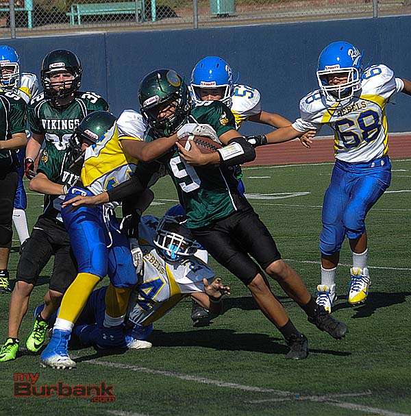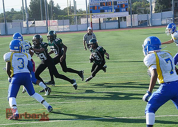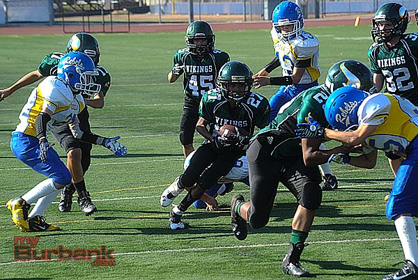 Meanwhile the Burbank Vikings Junior Black rocked the Santa Clarita Aztecs, 42-24 at Castaic Middle School behind running back Malik Jackson’s 190 yards that included a 90-yard dash and two touchdowns.