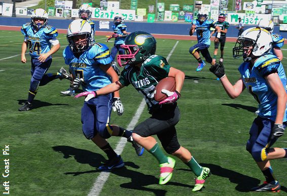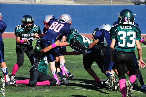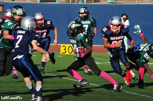 In what amounted to a glorified scrimmage, the Burbank Vikings Junior Green toyed with the Agoura Chargers and walked away 49-0 winners on Saturday. It marked the 20th consecutive win for this talented group of young boys who began the streak last season as Midget Green and won the Super Bowl in the process.
