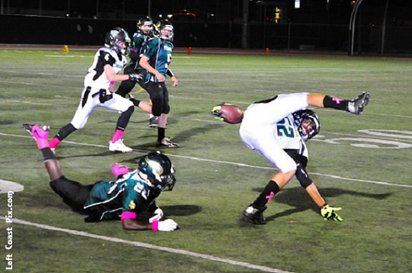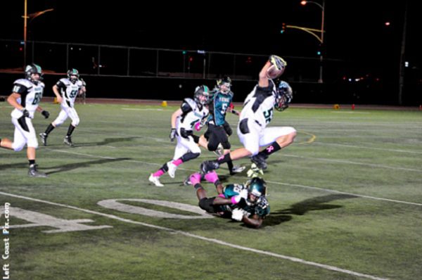 Maxwell Cotton jarred the football loose from an Agoura running back, and Sorokin returned the sphere 20 yards for a score that made it 28-0. Manny Pimentel’s extra point gave the Vikings a 29-0 lead.