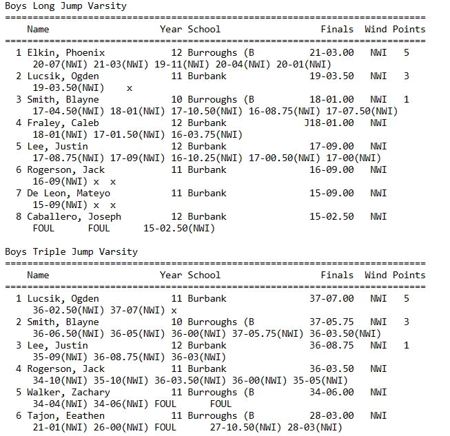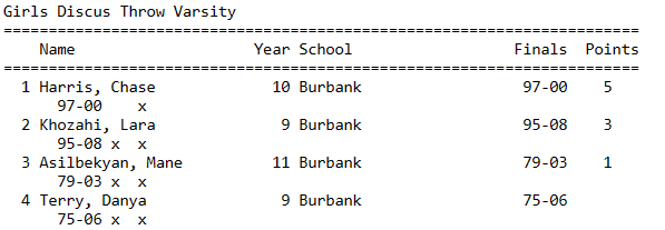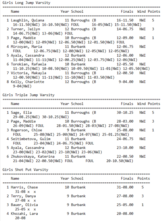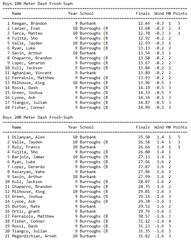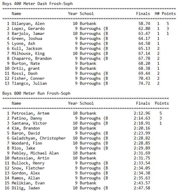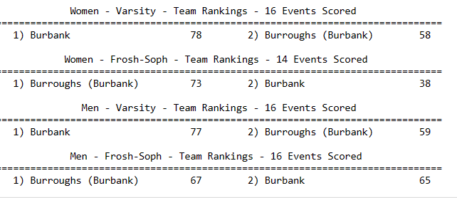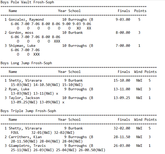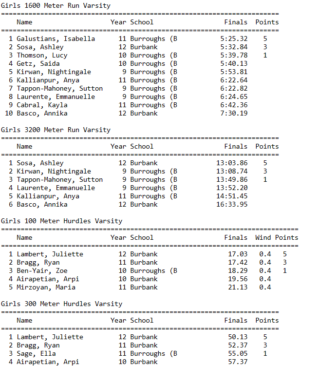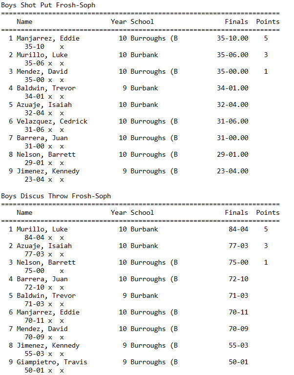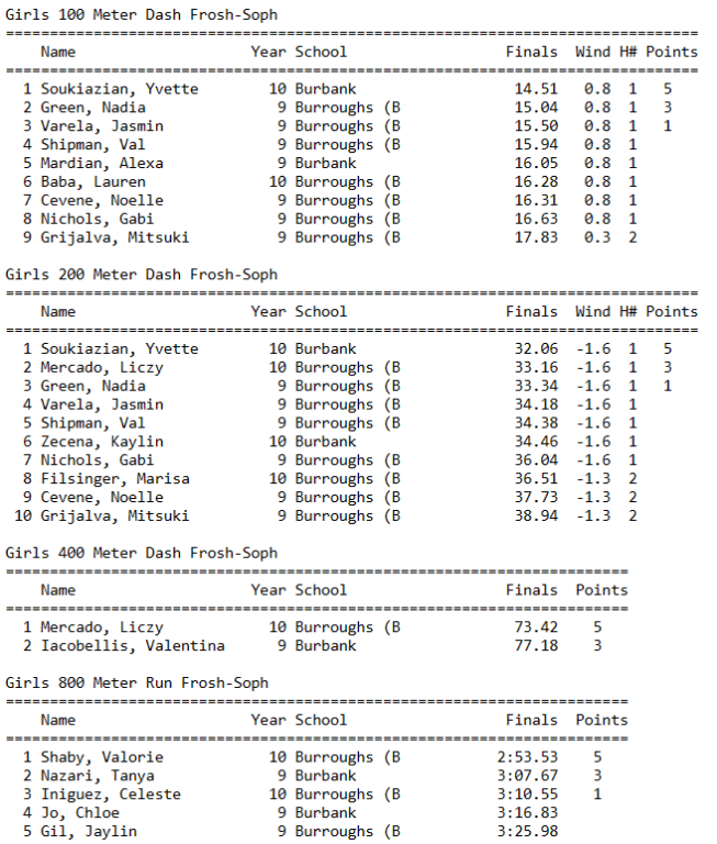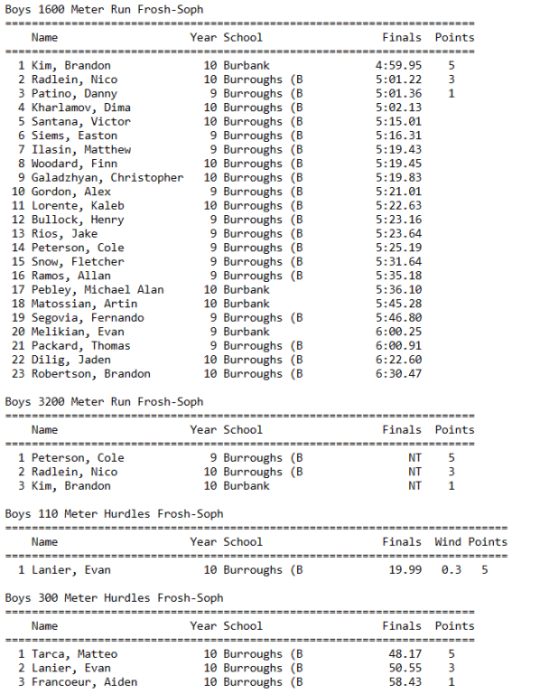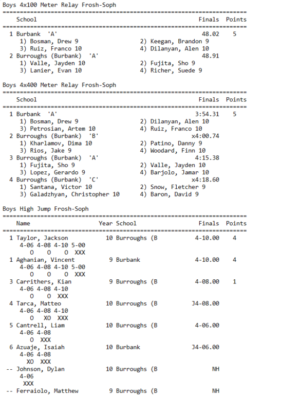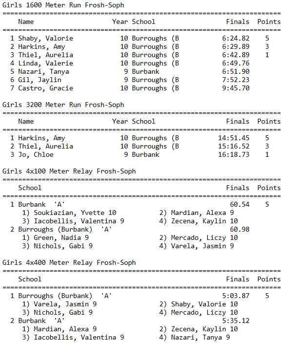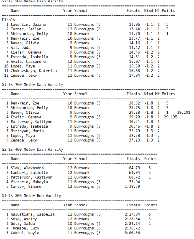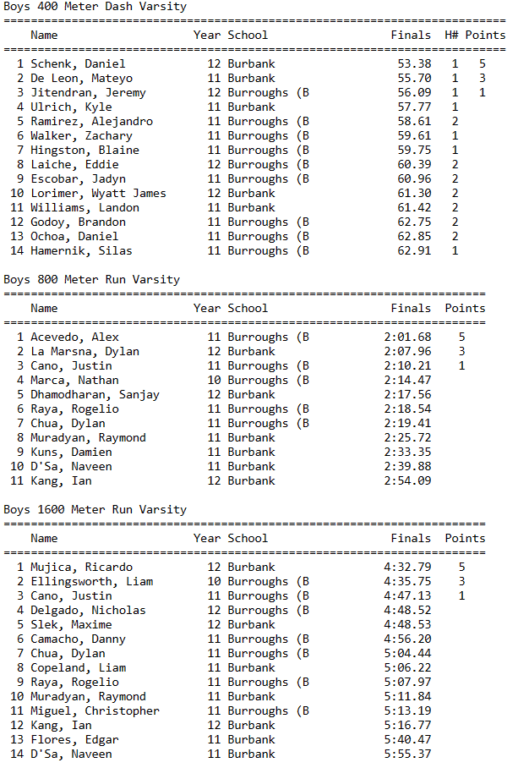Burbank and Burroughs squared off in a dual meet at Memorial Field Thursday afternoon.