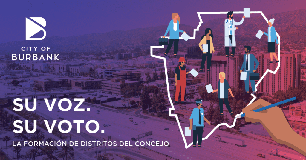¿Sabía usted que puede ayudar a Burbank en la transición de un sistema de elección general a un sistema por distritos? El proceso de formación de distritos determina qué vecindarios y comunidades se agrupan en un distrito para elegir a los miembros del Consejo Municipal. Para recibir su propuesta sobre cómo deberían ser dibujados los límites de los distritos, disponemos de dos herramientas de mapas interactivos y estamos organizando foros comunitarios y audiencias públicas.