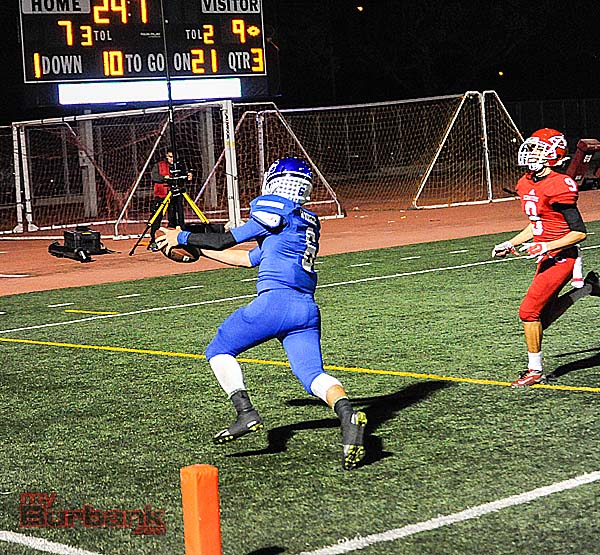 When Bell fumbled which Alvarez recovered, it set up senior quarterback Ryan Meredith’s 21-yard screen pass to Warren with 23.8 seconds left in the third quarter that increased Burbank’s lead to 16-7.