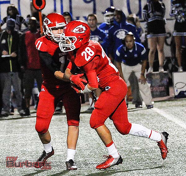 Burroughs’ initial series of the second half resulted in another punt, but the Indians didn’t fold their tent as Bell chimed in with a three-yard burst and 3:20 remaining in the third quarter that capped a seven-play, 63-yard drive and cut Burbank’s advantage to 9-7.