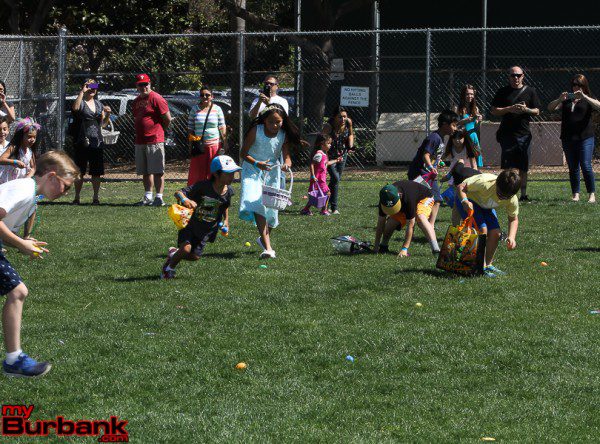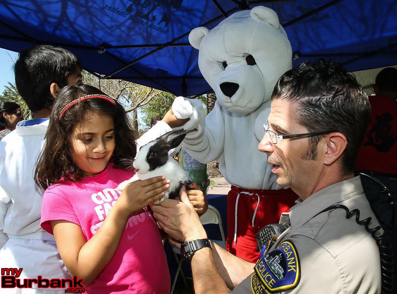 The Burbank Parks and Recreation Department held its annual Easter Egg hunt and activities which included several bounce houses, a photo booth with a big Easter Bunny, the Burbank Animal Shelter with some live bunnies, and several Burbank organizations such as Walk Bike Burbank and DeBell Golf Course that brought along a mini driving range.