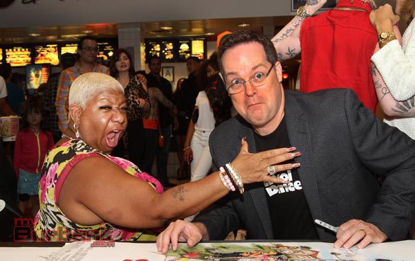 Actress and writer Luenell play Jason’s mother in the film. She was layering her popcorn with butter and garlic salt from a shaker she brought from home.