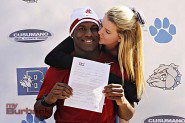 Assistant Principal of Athletics Matt La Belle (lt) and Burbank High held a signing ceremony in honor of James (Photo By Edward Tovmassian)