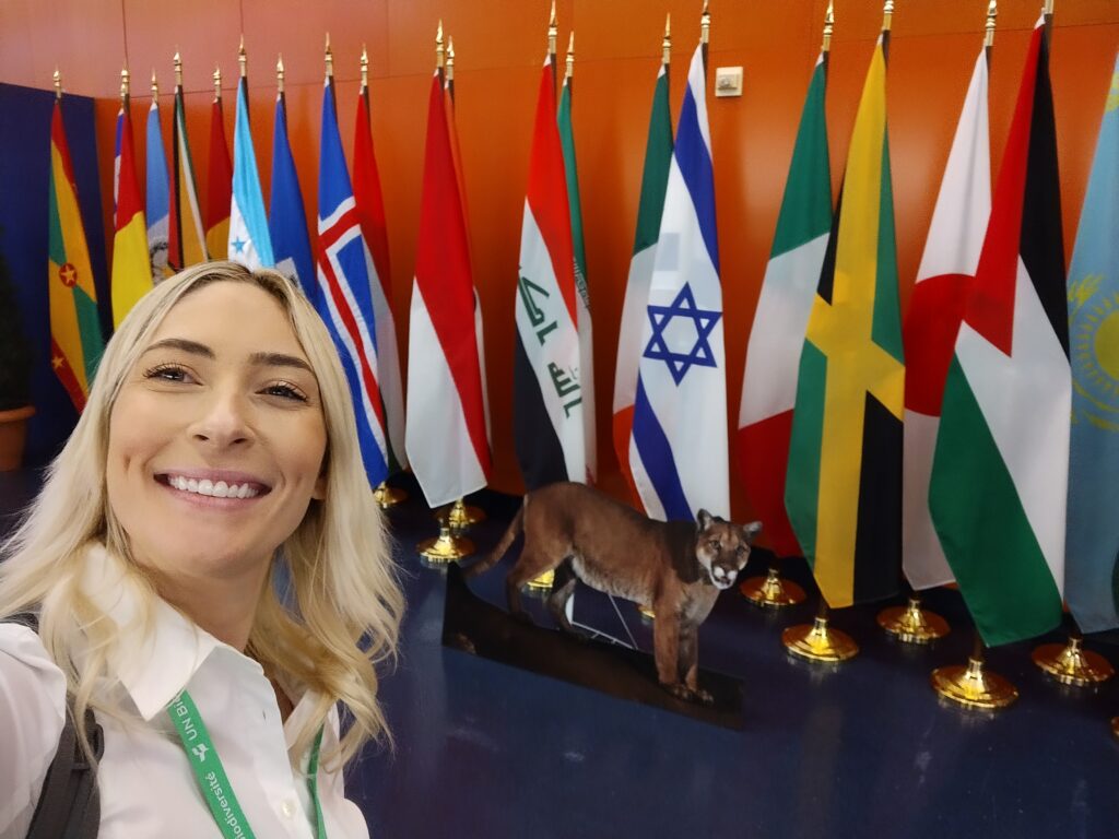 Korinna Domingo with P-22 likeness at COP15 in Montreal, Canada.