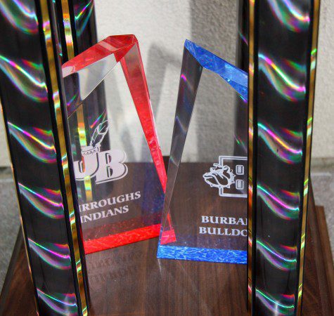 myBurbank-Trophy-3582-475x450On top of the base are beautiful acrylic pieces that feature the logos of both Burroughs and Burbank High School.
