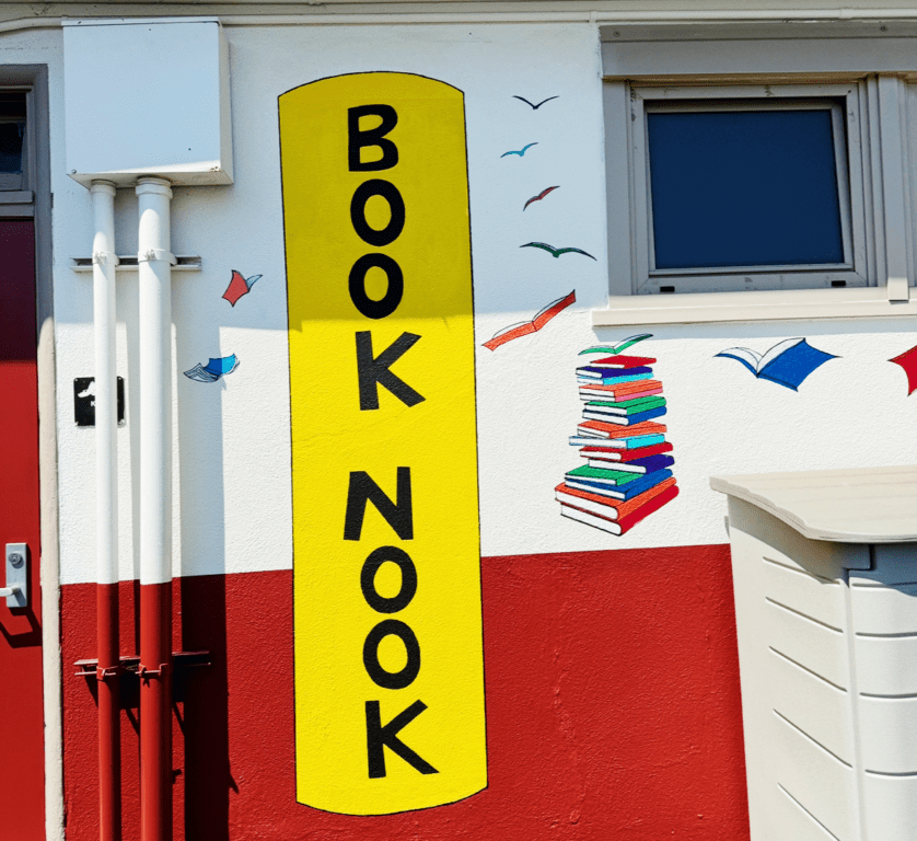 Led by their passionate art teacher, Karen Nakashima, the high school students collaborated closely with the elementary school’s new Art Committee, to design a mural that reflects the diverse culture and dreams of the young students. The murals, which spans all four walls of the library, features the word “welcome” in 75 languages on one wall, inspirational quotes and an imaginative scene that transports viewers into a world of reading on the other three walls.