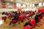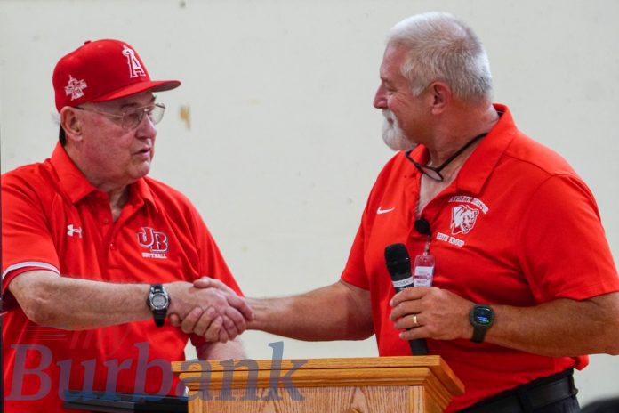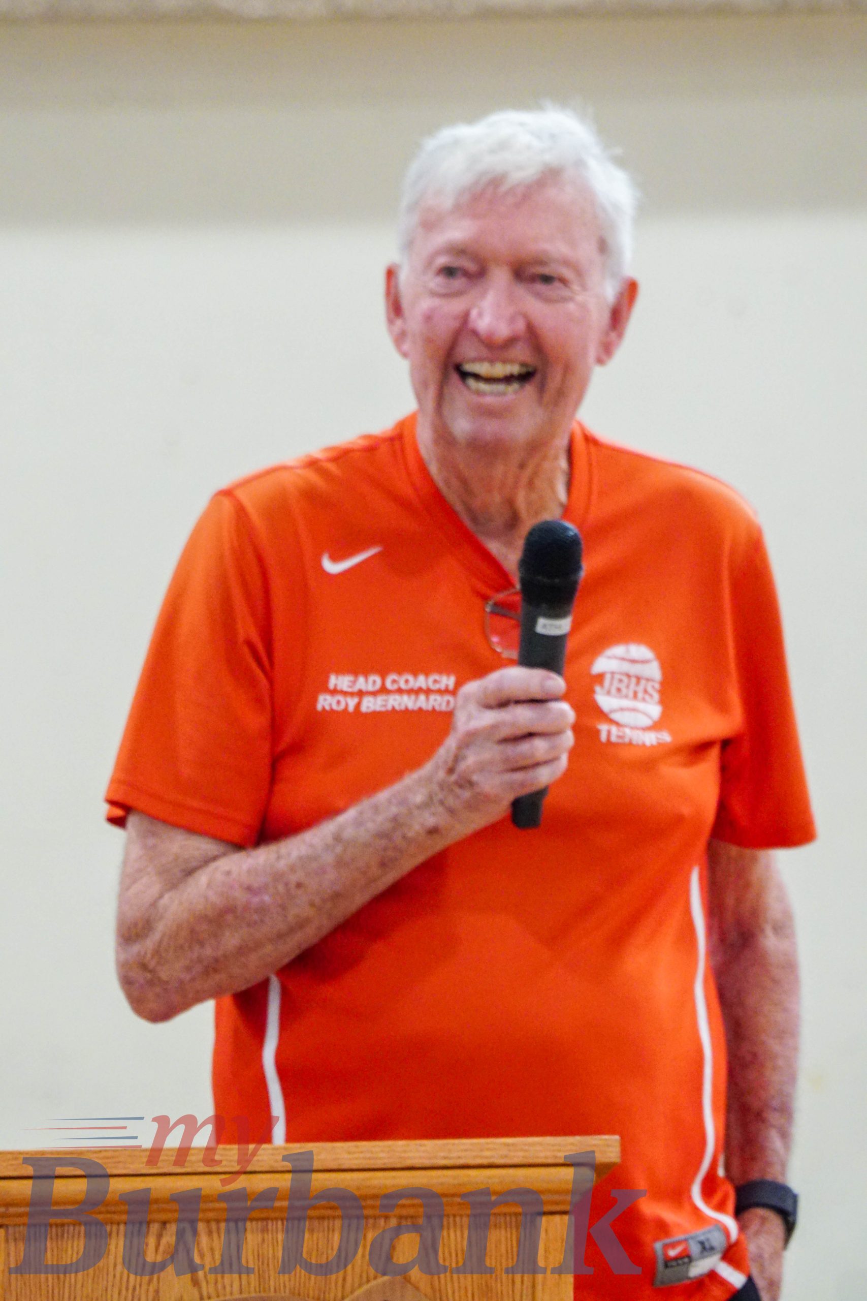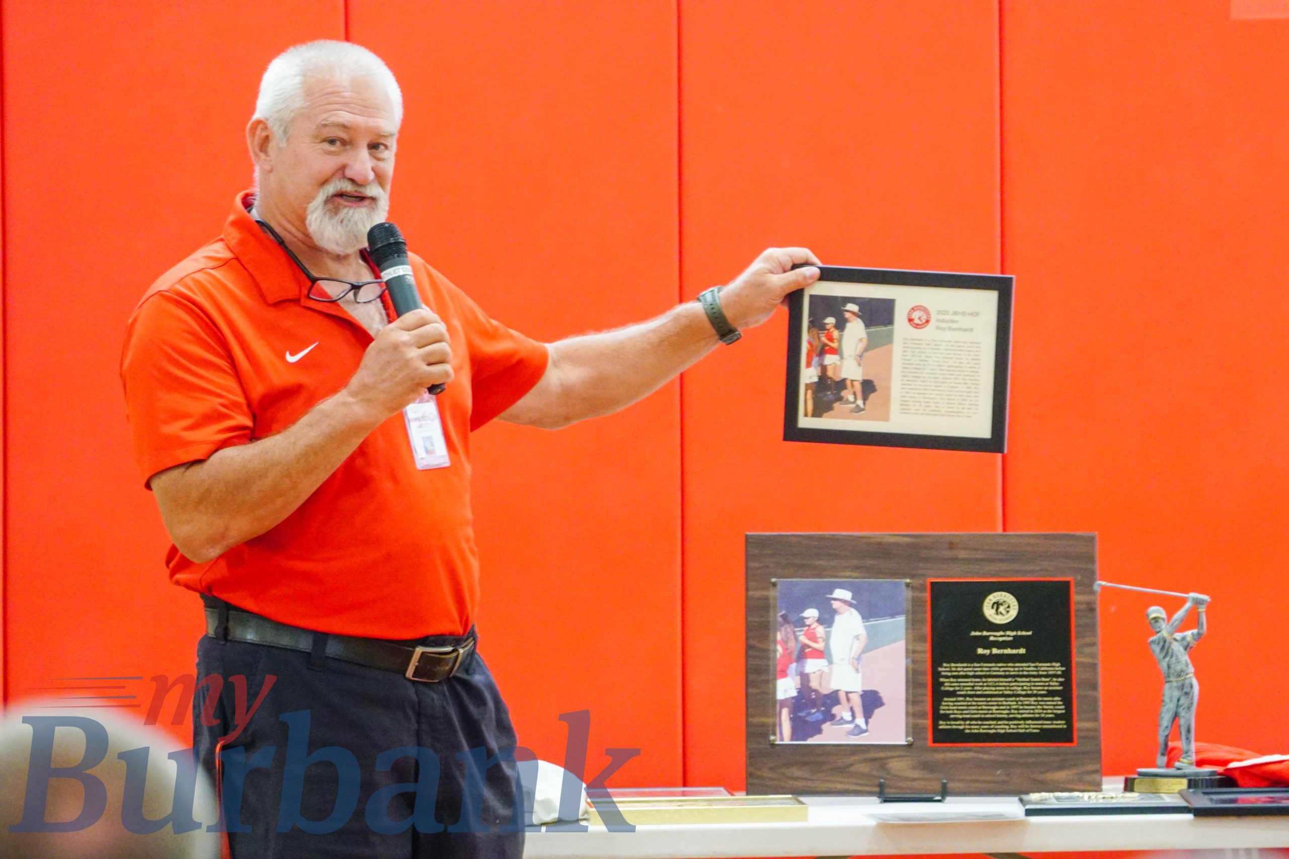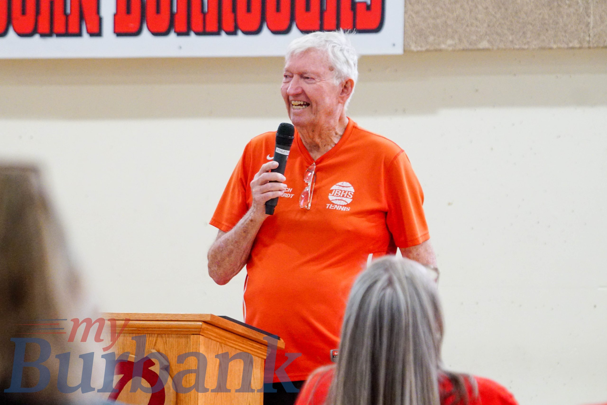 Longtime tennis coach Roy Bernhardt and Louie Binda, who coached soccer and softball for several decades were given their plaques and recognized for their service to Burroughs.