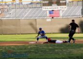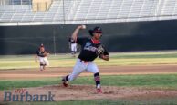 Facing 24 batters or three over the minimum for seven innings, the talented right-hander yielded one hit, striking out 14 and walking one en route to a 2-1 Pacific League win over longtime rival Burbank Friday night at an overflow and enthusiastic crowd at Tomahawk Field.