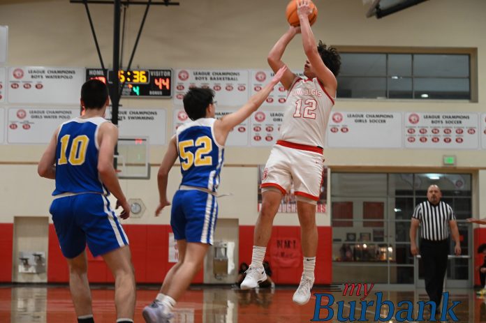 A three-pointer by Burroughs junior guard Nico Meza with 47.7 seconds left in the game gave the Bears a 60-57 cushion.