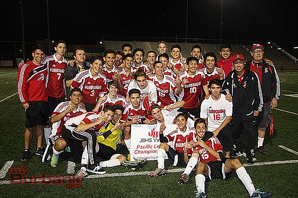 Burroughs (15-3-5 overall, 11-1-2 league) knocked off rival Burbank, 4-2, Thursday night at Memorial Field to capture the ninth league title in school history, all of which have been guided by Kodama- 1992, 1993, 1994, 1995, 1997, 2008, 2009, 2013, 2014.