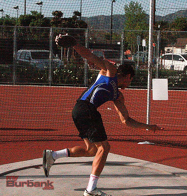 Burbank’s Andy Hurtado won the shot put with a throw of 43-02.5. Teammates Noah Powell won the triple jump with a leap of 41-02 and Chris Miranda placed first in the discus (122-0).