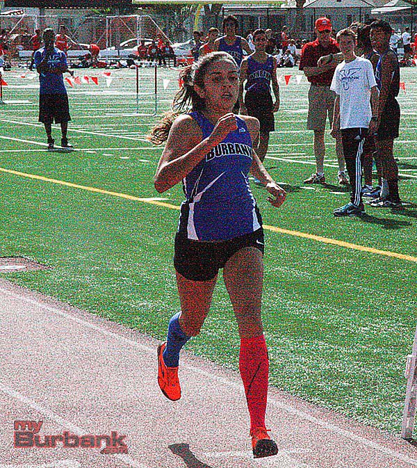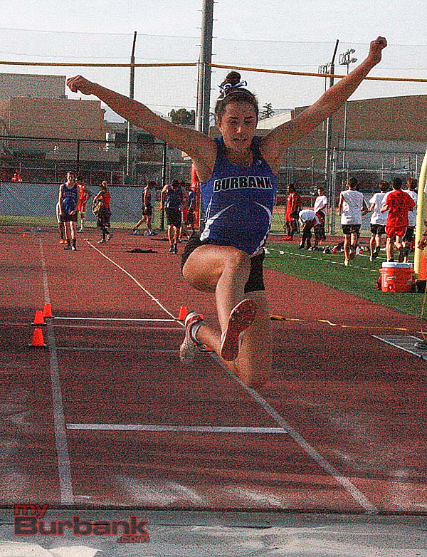 Arsen Mkrtchyan of Burbank won the 800 meter race in 2:00.87. Burroughs’ Robert Brennan won the 400 meters in 50.29 and the 200 meter dash in 22.86. Brennan also anchored the last leg for the Indians as they won the 4 x 400 relay in 3:30.28. Burbank finished with a time of 3:34.94.