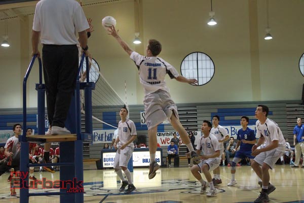 Burbank cut the lead to 9-4 on a block by Robert O’Brien. Burroughs then put together another run led by Nick Van Loo. Later in the set Burbank would get no closer than 19-11.