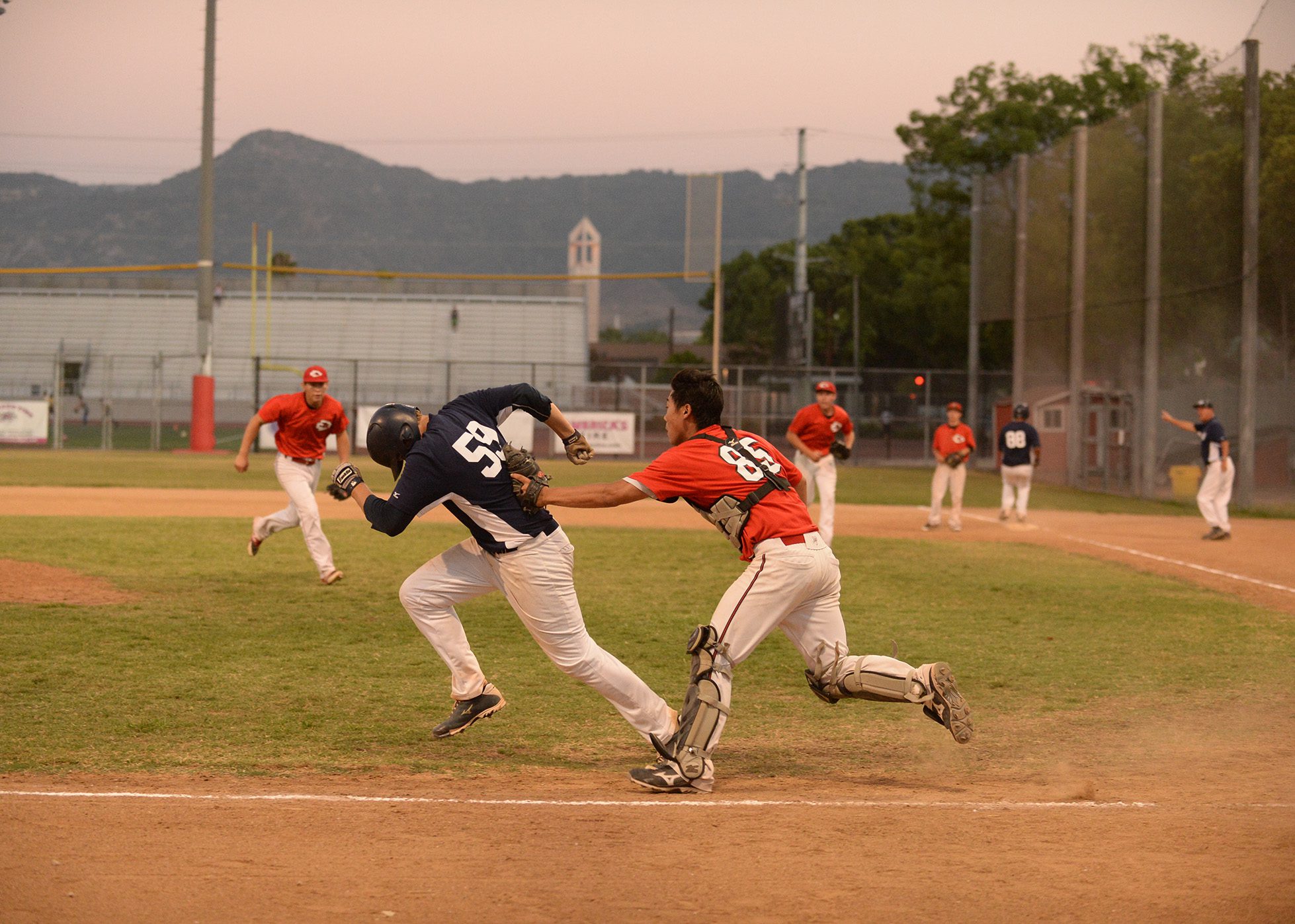 Roy Hirota tags out a Chatsworth runner (Photo courtesy of Mitch Haddad)