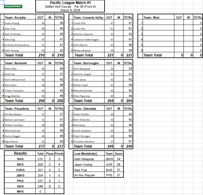 Burroughs, Burbank Go 1-2 in Pacific League Golf Match No. 1