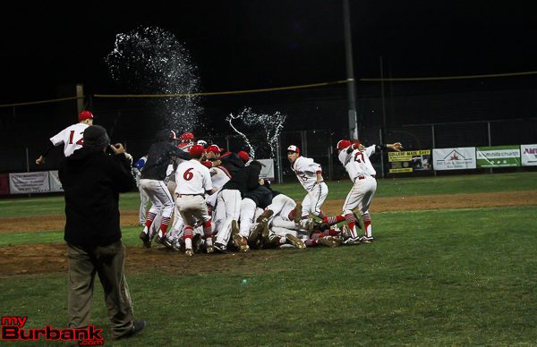 A 90 minute lightning and rain delay didn’t deter the Burroughs Indians from ending the regular season in style. A day that began with Senior Night recognition ended with another dogpile as Burroughs defeated Burbank, 3-1, to sweep the season series from their crosstown rivals.